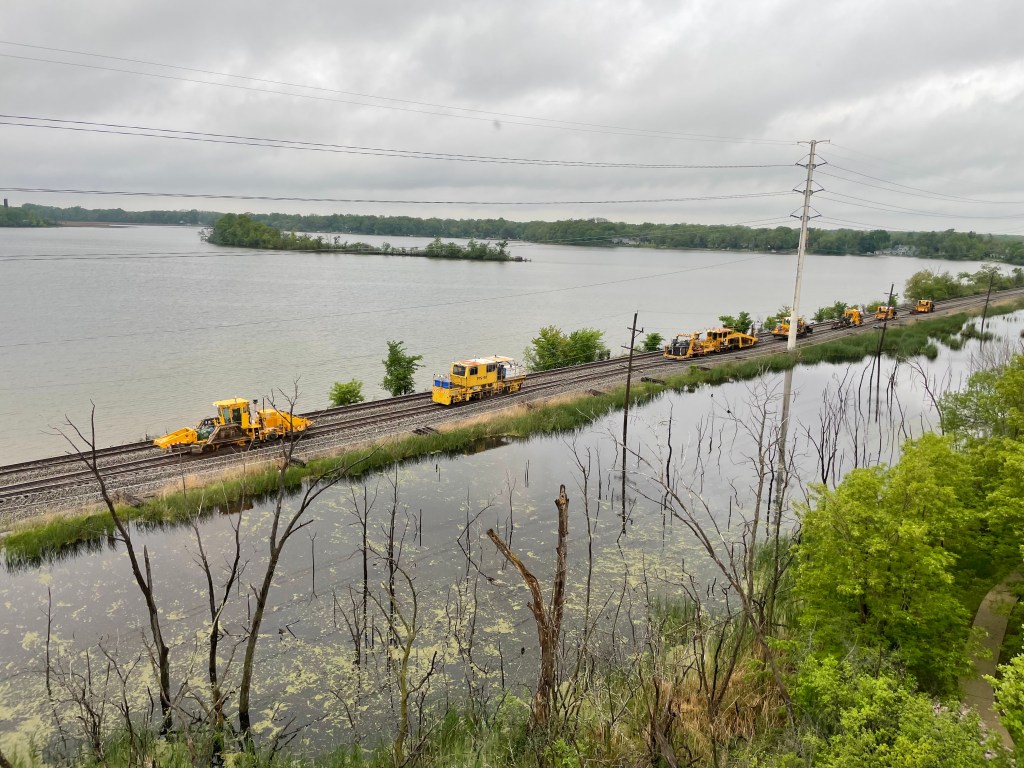 From our sixth-floor window, we’ve been watching the progress of a railroad upgrade project. The replacement ties got dropped down in stacks along the tracks more than a month ago. When would they begin the process of replacing the old ties? How would that be accomplished?